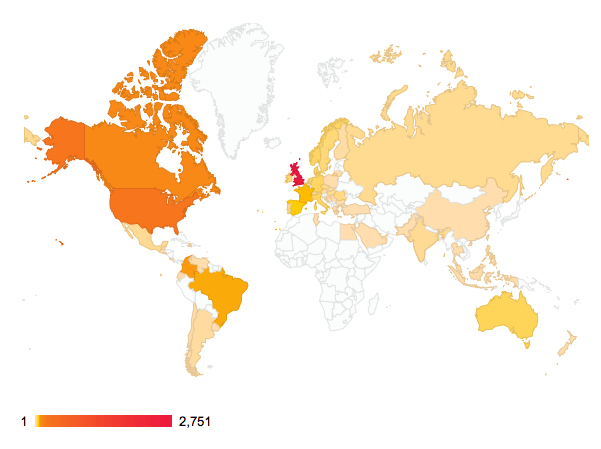 These are the countries from where fans have visited our site.